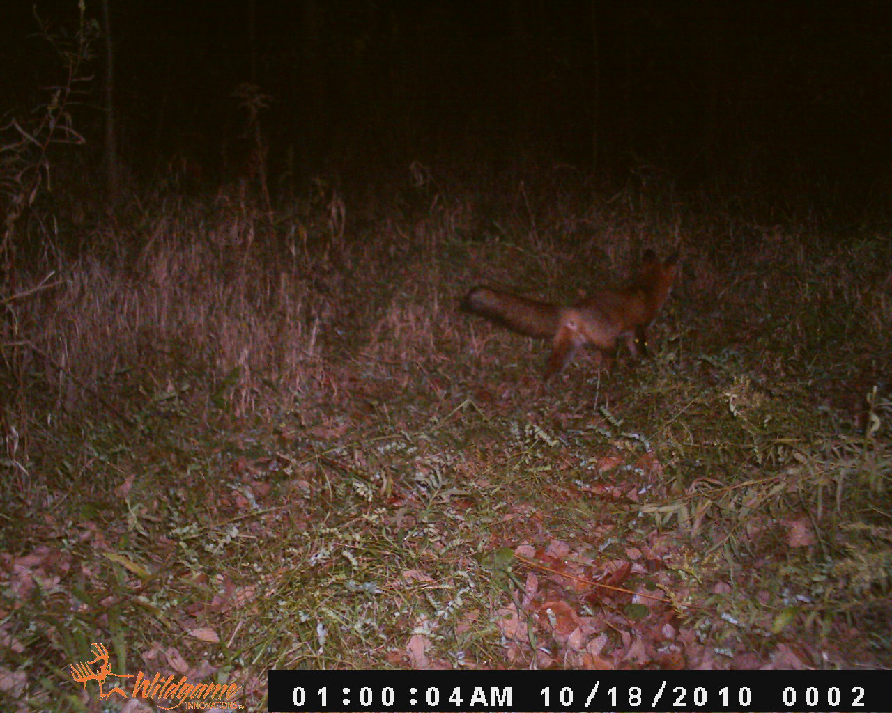My dad and brother and I have been emailing back and forth about my trip out there in a couple of weeks and I am also excited about that. My brother, BJ, has been sending me trail cam photos for the past couple weeks. I started viewing them and see we finally got a picture of a buck, a nice red fox and then someone dancing through the woods. Really, there was. You can see for yourself!